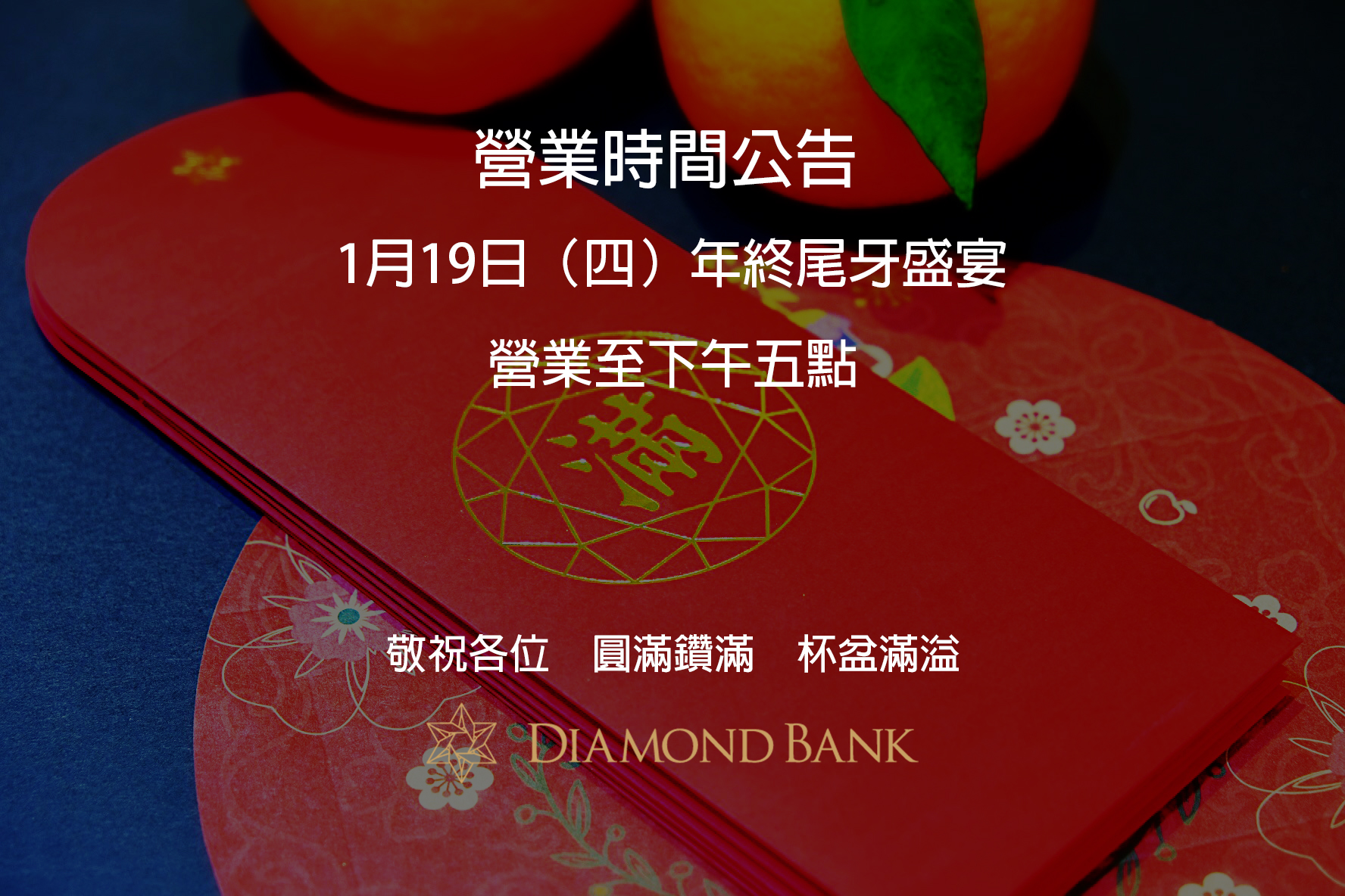 敬祝各位 圓滿鑽滿 杯盆滿溢
