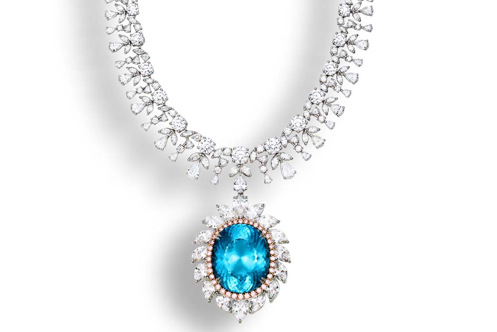此件作品不僅擁有獨特明亮霓虹藍色調、更是目前市場上最大的Paraiba碧璽,開展前即有不少藏家欲一探究竟。